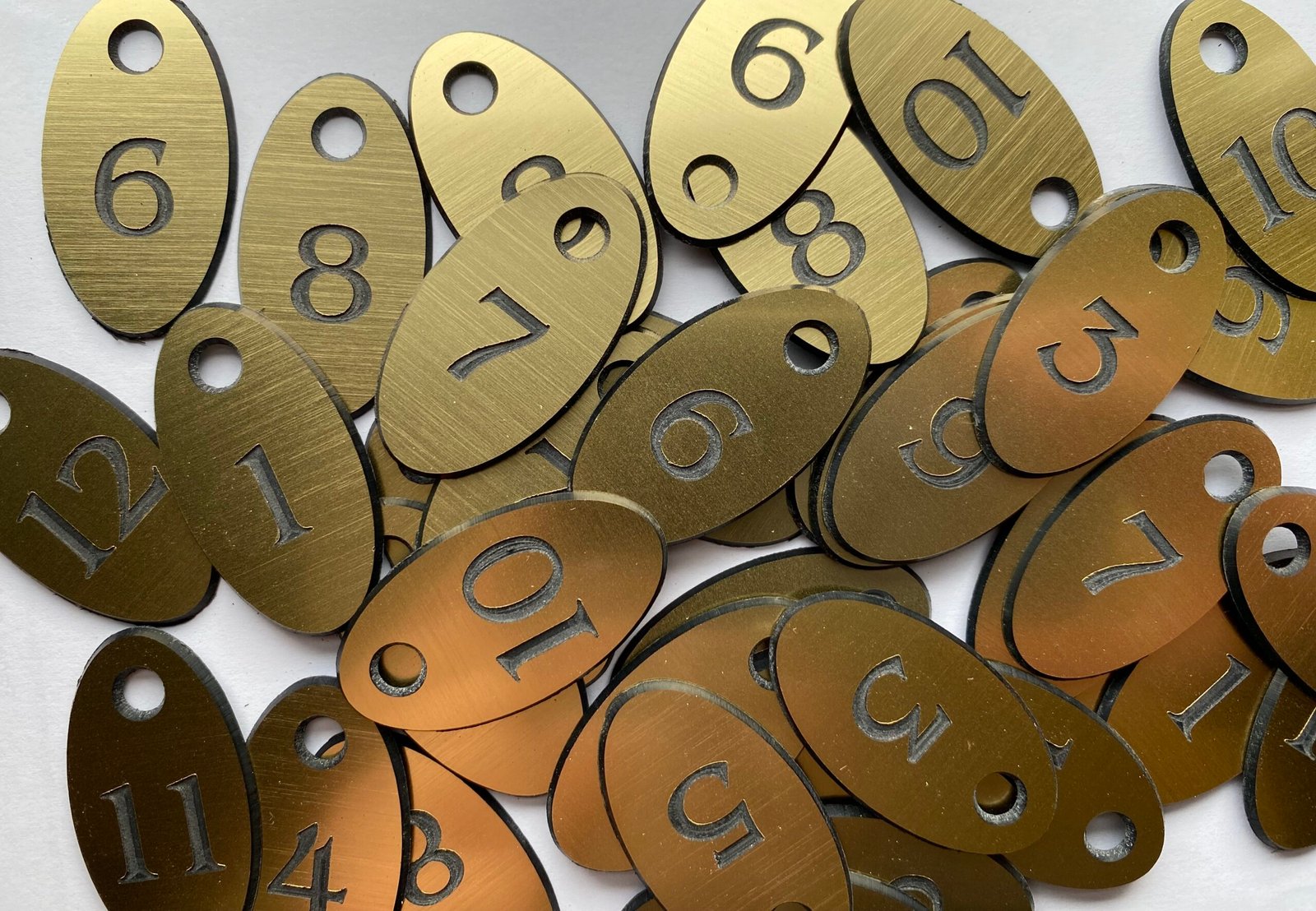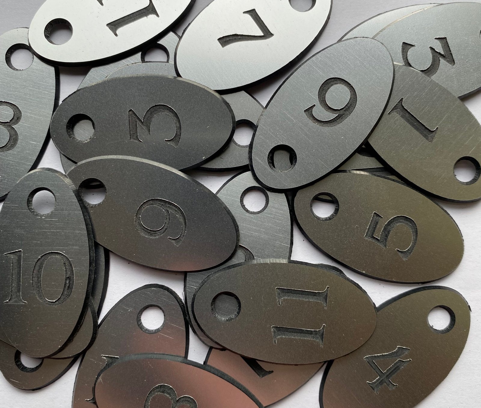 Visačka z jednostranného plastu s vyrytým číslem.