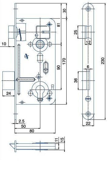 Zámek zadlabací vložkový, s převodem, dvouzápadový