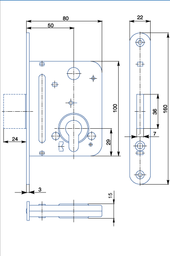 Zámek závorový vložkový, dvouzápadový