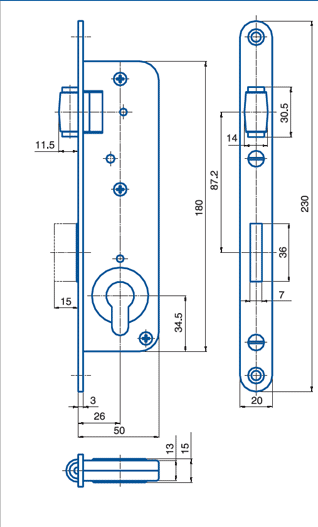 Zámek zadlabací vložkový s válečkovou střelkou, jednozápadový, bez převodu