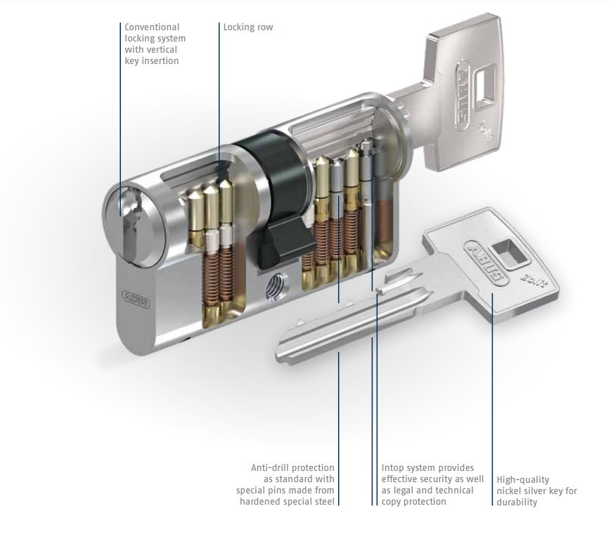 Integrovaný in-top systém, speciální testovací jednotka ve cylindrické vložce a na klíči, stejně jako vícenásobný paracentrický obrysový profil rovněž zaručují účinnou ochranu proti manipulaci s cylindrickou vložkou a nelegálním kopiím klíče.